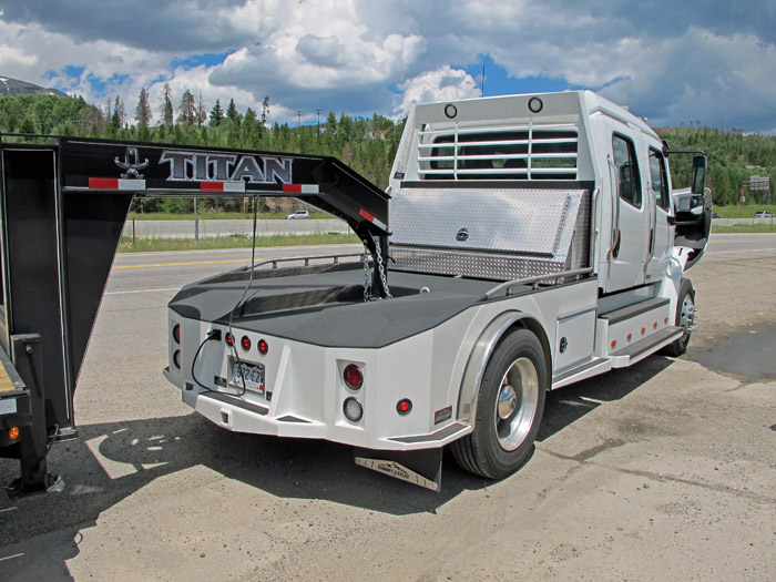 The Flip-Over Ball gooseneck hitch converts to smooth truck bed in seconds.